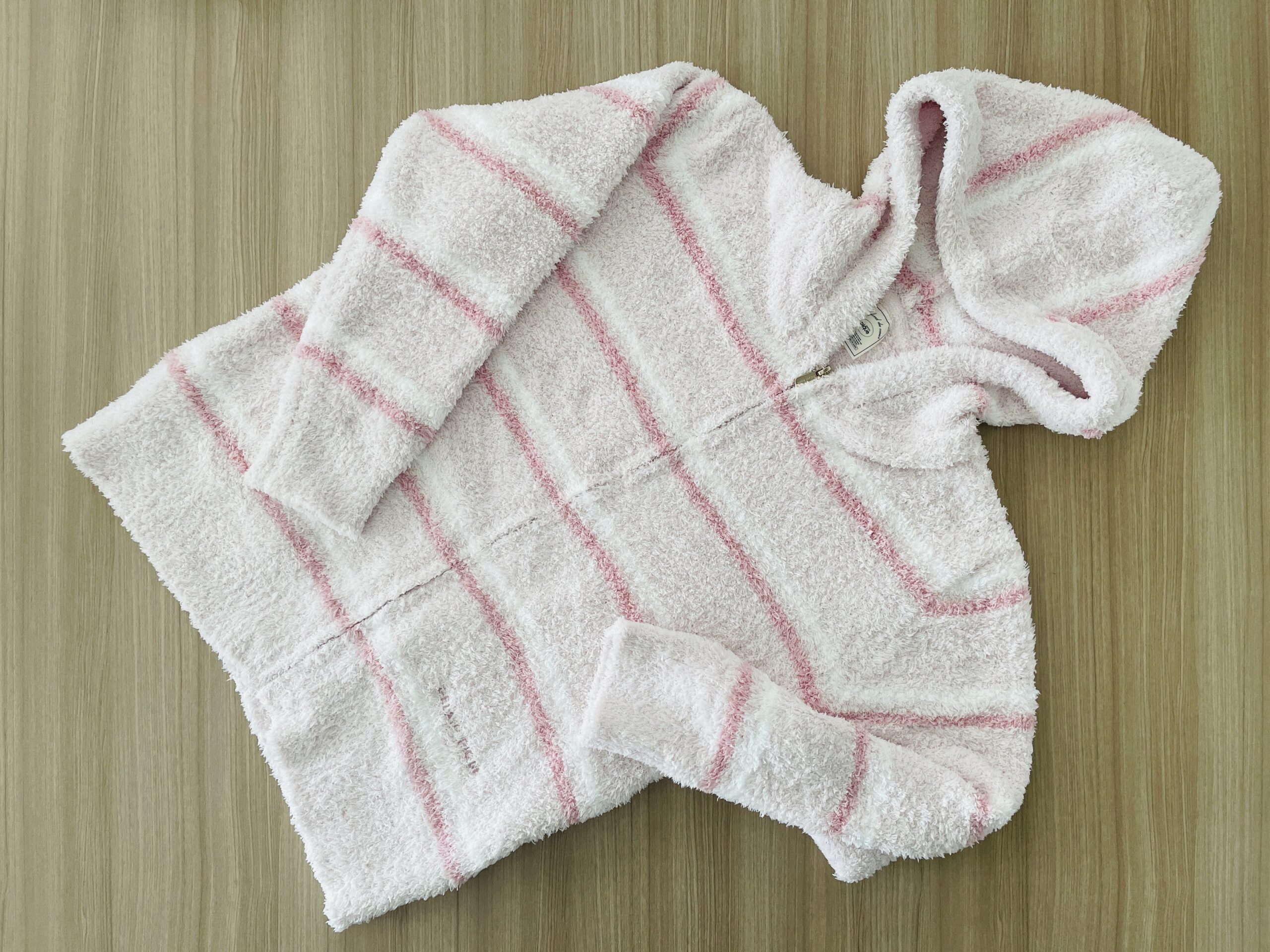 薄いピンクや濃いめのピンクに白を織り交ぜたセットアップです。